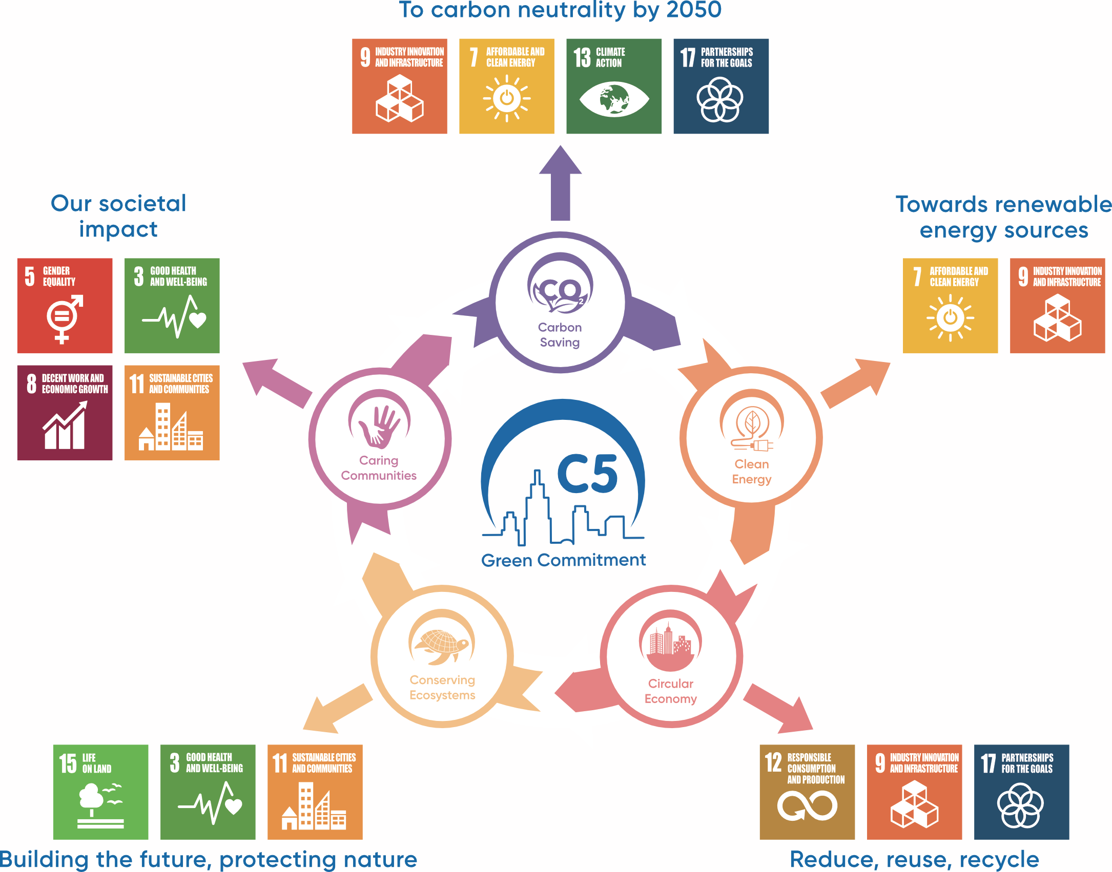 ArcelorMittal follows the C5 Green Commitment strategy , a long-term commitment with the goal of achieving climate neutrality by 2050. The strategy brings together our sustainability goals, initiatives and working methods in a common direction to create a more sustainable construction industry.